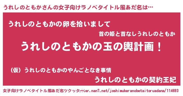 | 男性向けラノベタイトル風あだ名 | 『転生したらうれしのともかだった件』 |