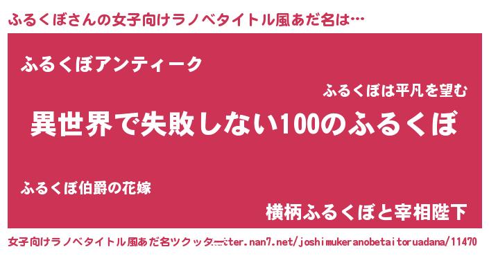 | 男性向けラノベタイトル風あだ名 | 『ふるくぼという概念が存在しない退屈な世界 』 |