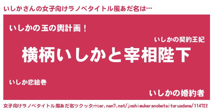 | 男性向けラノベタイトル風あだ名 | 『いしかに滅ぼされるだけの簡単なお仕事です』 |