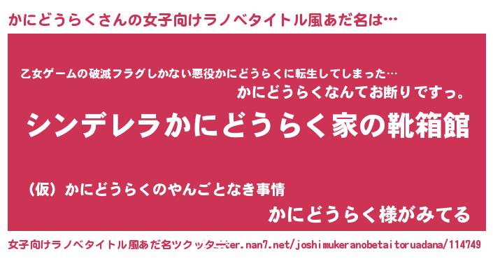 | 男性向けラノベタイトル風あだ名 | 『緋弾のカニドウラク』 |