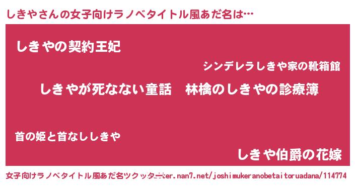 | 男性向けラノベタイトル風あだ名 | 『魔弾の王としきや』 |
