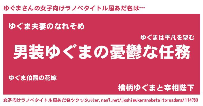 | 男性向けラノベタイトル風あだ名 | 『うちのゆぐまが世界を掌握している!』 |