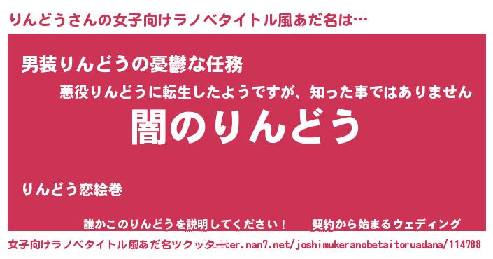 | 男性向けラノベタイトル風あだ名 | 『Re:りんどうから始める異世界生活』 |