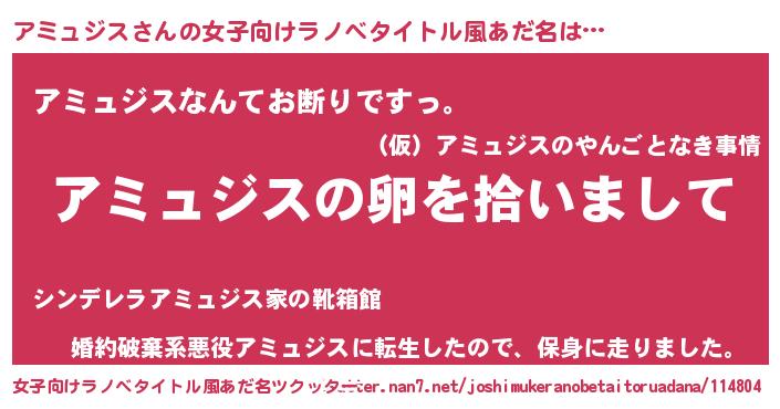 | 男性向けラノベタイトル風あだ名 | 『ダンジョンにアミュジスを求めるのは間違っているだろうか』 |