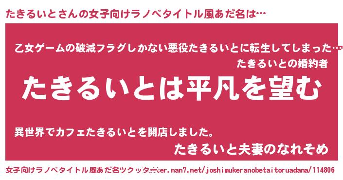 | 胡散臭い通販商品みたいなあだ名 | 『信頼と実績のネックレス…その名も「たきるいと」』 |