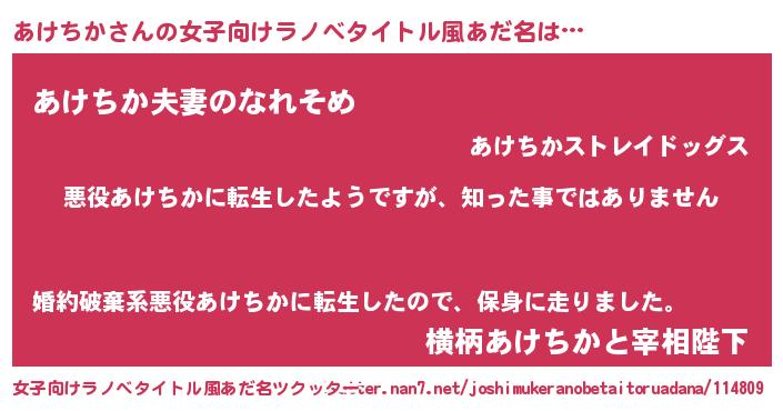 | 男性向けラノベタイトル風あだ名 | 『この素晴らしい世界にあけちかを!』 |