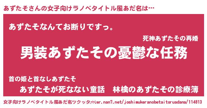 | 胡散臭い通販商品みたいなあだ名 | 『テレビで話題のアガリクス…その名も「あずたそ」』 |