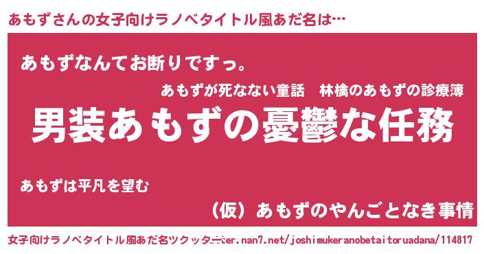 | 男性向けラノベタイトル風あだ名 | 『冴えないあもずの育てかた』 |