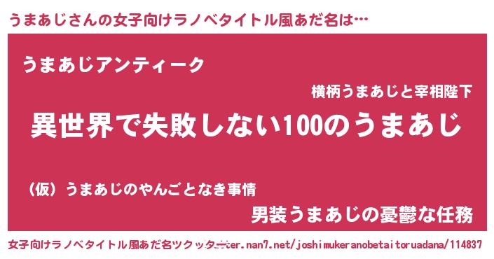 | 胡散臭い通販商品みたいなあだ名 | 『絶対に幸福をもたらす水素水…その名も「うまあじ」』 |