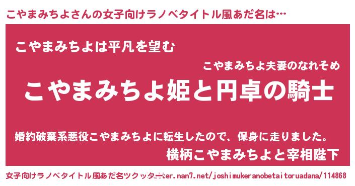 | 男性向けラノベタイトル風あだ名 | 『こやまみちよの憂鬱』 |