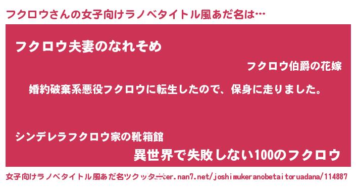 | ヘコむあだ名 | 『フクロウ(爆)』『豆乳』『フクにー』 |