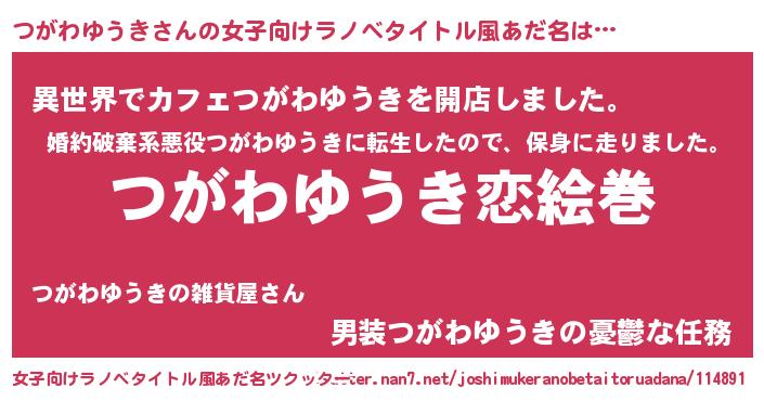 | 男性向けラノベタイトル風あだ名 | 『ノーゲーム・ノーツガワユウキ』 |