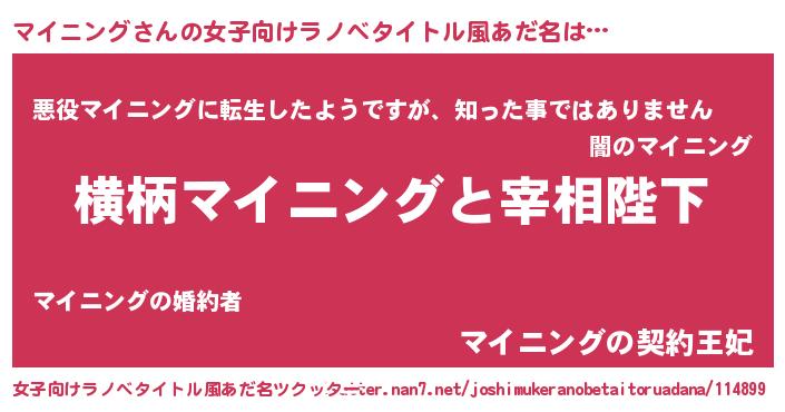 ヘコむあだ名 | 『マイニング(遠い目)』『レバニラ』 |