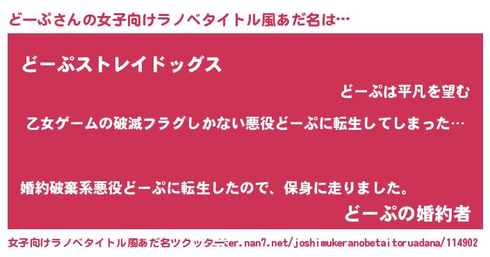 | 胡散臭い通販商品みたいなあだ名 | 『世界中を虜にした世界で10本だけ現存している希少なブランデー…その名も「どーぷ」』 |