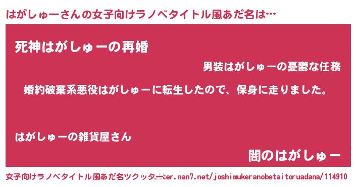| 料理風あだ名 | 『はがしゅーごはん』 |