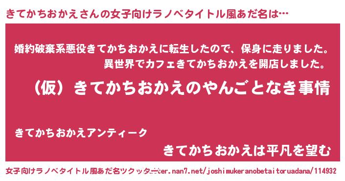 | 男性向けラノベタイトル風あだ名 | 『きてかちおかえの憂鬱』 |