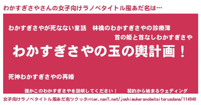 | 男性向けラノベタイトル風あだ名 | 『転生したらわかすぎさやだった件』 |