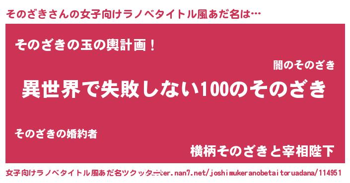 | 胡散臭い通販商品みたいなあだ名 | 『絶対に幸福をもたらす水素水…その名も「そのざき」』 |