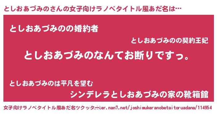 | 意味不明あだ名 | 『自称としおあづみの』 |