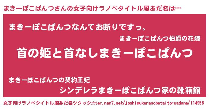 | 男性向けラノベタイトル風あだ名 | 『はたらくまきーぽこぱんつさま!』 |