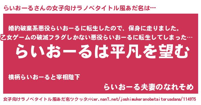 | 男性向けラノベタイトル風あだ名 | 『ダンジョンにらいおーるを求めるのは間違っているだろうか』 |