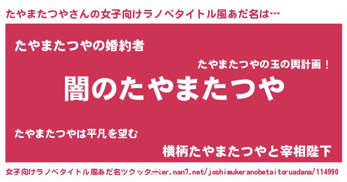 | 男性向けラノベタイトル風あだ名 | 『Re:たやまたつやから始める異世界生活』 |