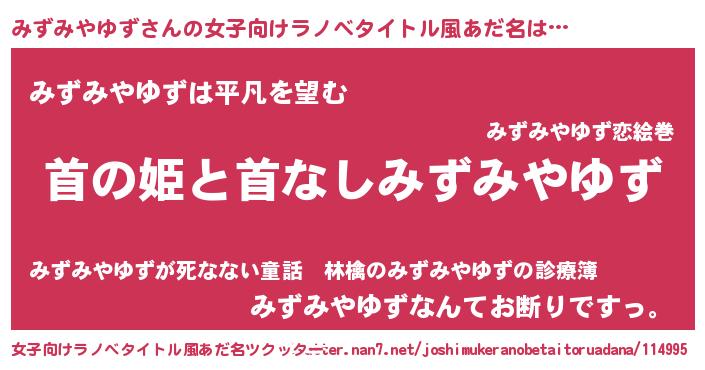 | 胡散臭い通販商品みたいなあだ名 | 『伝統あるネックレス…その名も「みずみやゆず」』 |