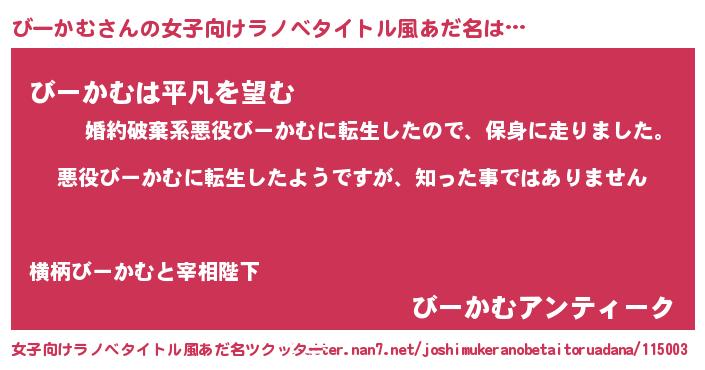 | 意味不明あだ名 | 『住所不定無職びーかむ(93歳)』 |