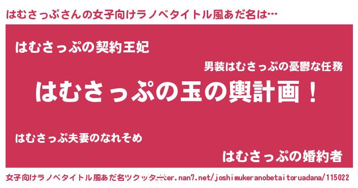| 男性向けラノベタイトル風あだ名 | 『転生したらはむさっぷだった件』 |