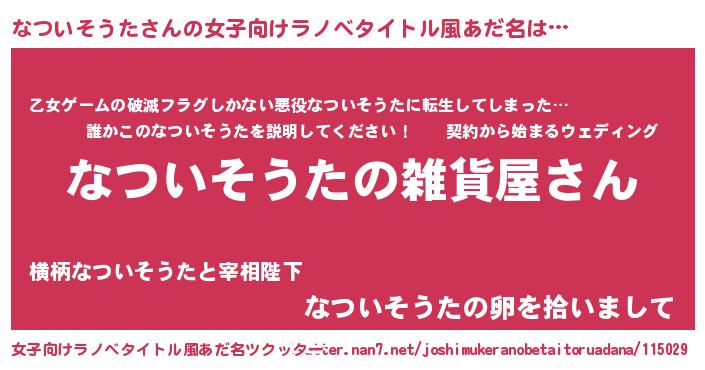 | 男性向けラノベタイトル風あだ名 | 『やはりなついそうたの青春ラブコメはまちがっている 』 |