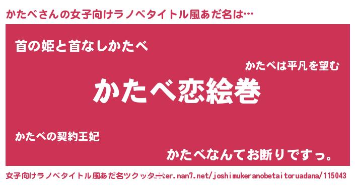 | 男性向けラノベタイトル風あだ名 | 『ノーゲーム・ノーカタベ』 |