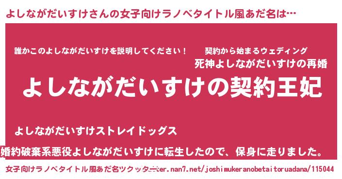 | 胡散臭い通販商品みたいなあだ名 | 『来世でも幸せになれる水素水…その名も「よしながだいすけ」』 |