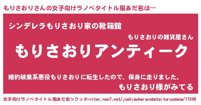 | 男性向けラノベタイトル風あだ名 | 『魔法科高校のもりさおり』 |