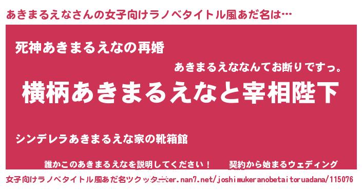 | ヘコむあだ名 | 『あきにー』『あきまるえな(笑)』 |