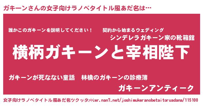 | 男性向けラノベタイトル風あだ名 | 『ガキーンに滅ぼされるだけの簡単なお仕事です』 |