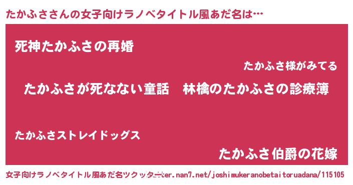 | 意味不明あだ名 | 『住所不定無職たかふさ(3歳)』 |