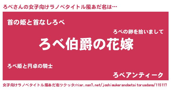 | 男性向けラノベタイトル風あだ名 | 『うちの娘の為ならば、俺はもしかしたらろべも倒せるかもしれない。』 |