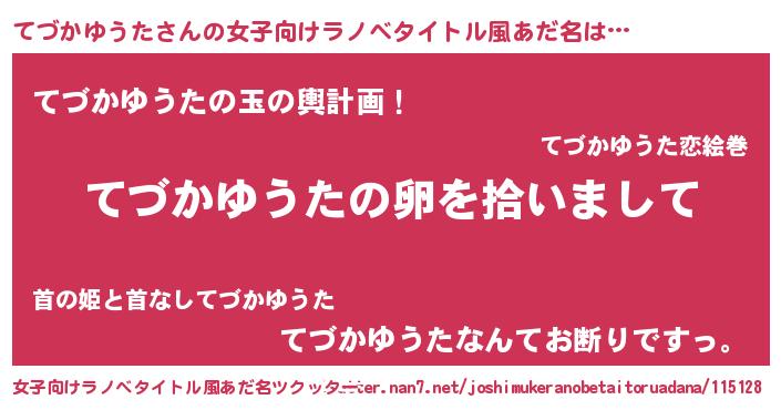 | 男性向けラノベタイトル風あだ名 | 『てづかゆうたの嫁は女の子じゃないと思った?』 |