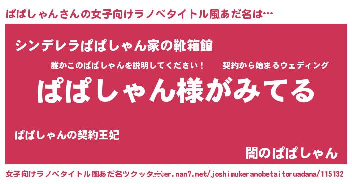 | 胡散臭い通販商品みたいなあだ名 | 『全米が絶賛したサプリメント…その名も「ぱぱしゃん」』 |