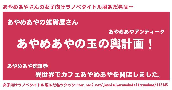 | 胡散臭い通販商品みたいなあだ名 | 『世界が平和になる高級そうな壺…その名も「あやめあや」』 |