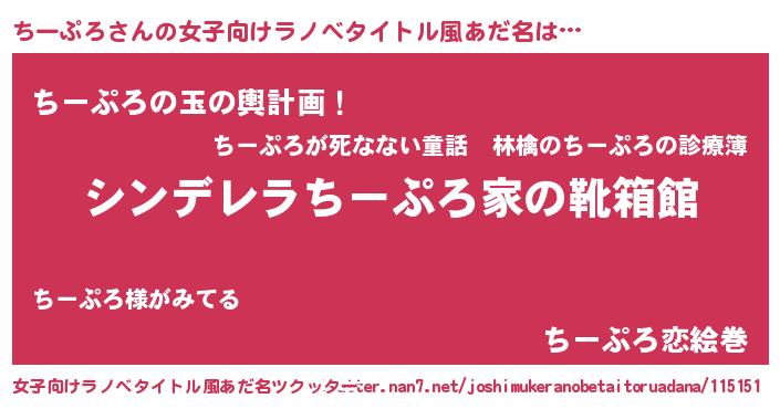 | 男性向けラノベタイトル風あだ名 | 『緋弾のチープロ』『魔弾の王とちーぷろ』 |