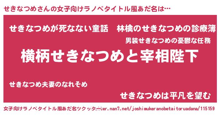 | 意味不明あだ名 | 『住所不定無職せきなつめ(39歳)』 |