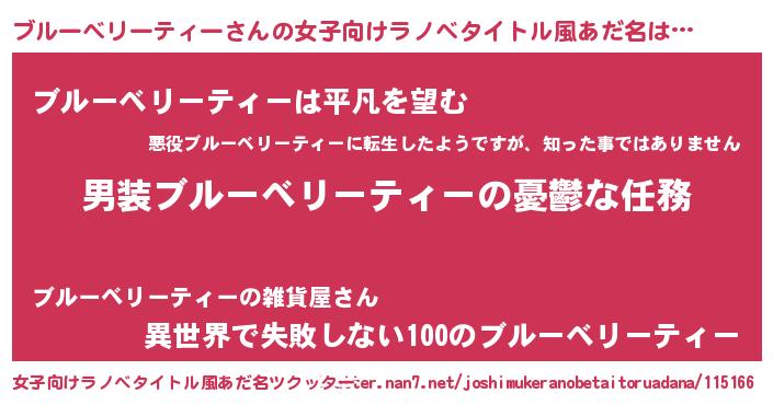 | 意味不明あだ名 | 『とにかく怪しいブルーベリーティー』 |