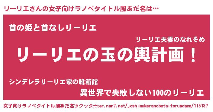 | 男性向けラノベタイトル風あだ名 | 『転生したらリーリエだった件』 |