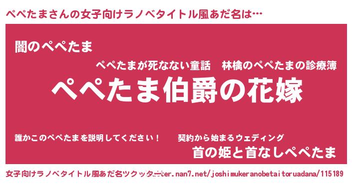 | 男性向けラノベタイトル風あだ名 | 『やはりぺぺたまの青春ラブコメはまちがっている 』 |