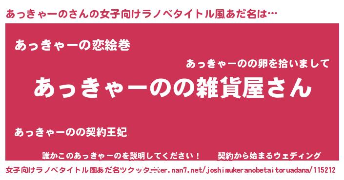 | 男性向けラノベタイトル風あだ名 | 『やはりあっきゃーのの青春ラブコメはまちがっている 』 |