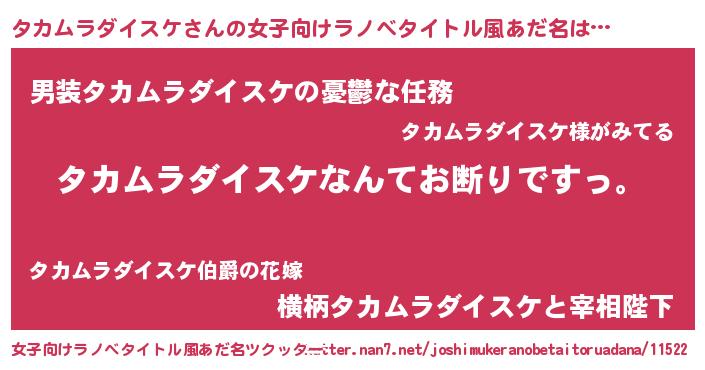 | 男性向けラノベタイトル風あだ名 | 『魔法科高校のタカムラダイスケ』 |