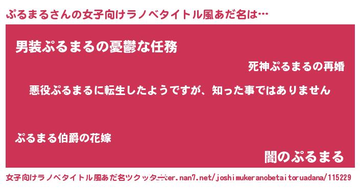 | 胡散臭い通販商品みたいなあだ名 | 『あなたにだけ特別に提供する世界で10本だけ現存している希少なブランデー…その名も「ぷるまる」』 |