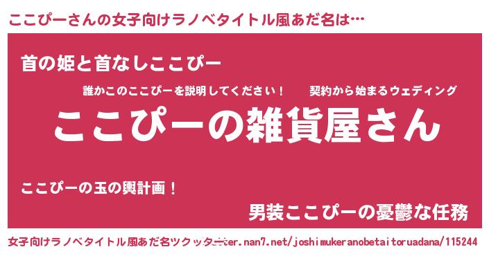 | ヒーロー風カッコイイあだ名 | 『ウルトラここぴーマン』『幻影騎士ココ』 |