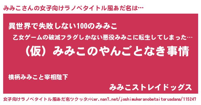 | ヘコむあだ名 | 『みみもー』『みみこ(小並感)』 |